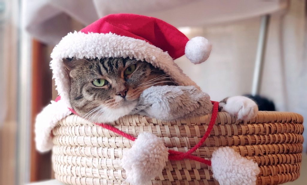 Give your pet a pair of reindeer antlers or a red nose and create your own little Rudolph! This works especially well for dogs and cats who tolerate accessories well.