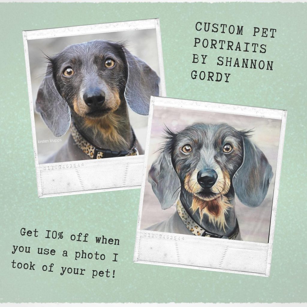 I’ve got an amazing deal for you with Shannon Gordy Artwork! Get 10% off a custom drawing of your pet when you use a photo I took!