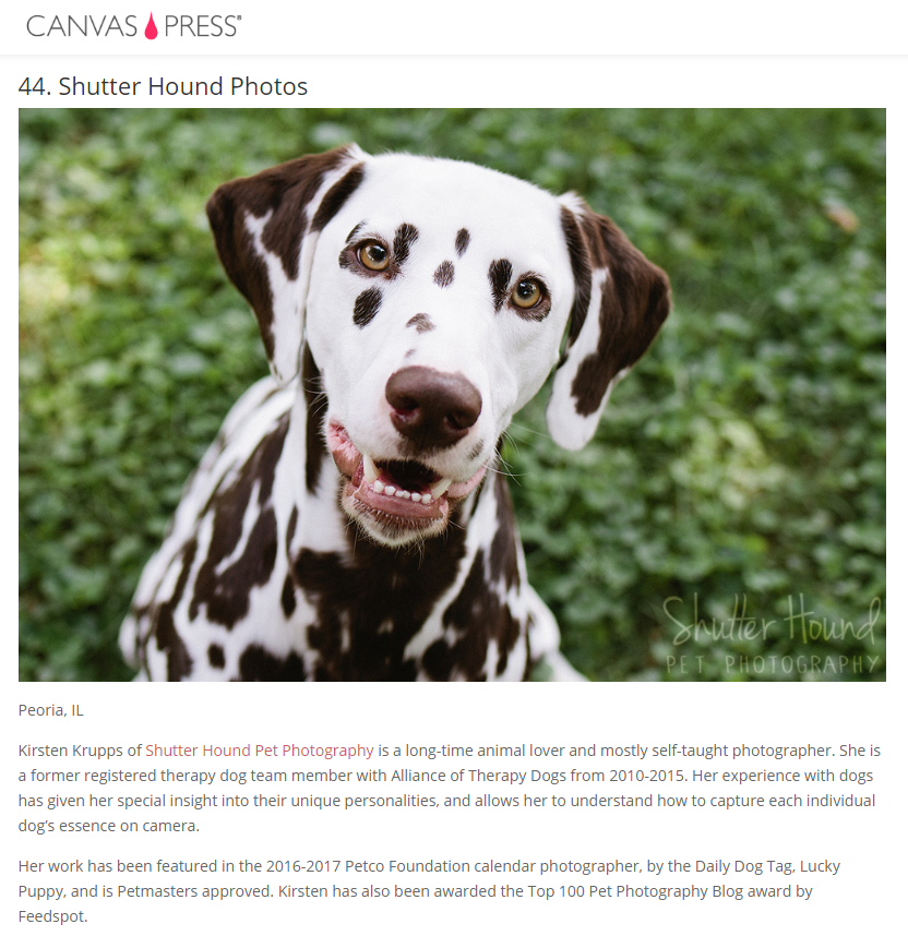 Oh my goodness, I was named by Canvas Press as one of the top 50 pet photographers in the US! How exciting and I’m honored! I loved checking out the full list and seeing all the amazing pet photographers. Some I’ve heard of already, but there were a good amount I hadn’t!