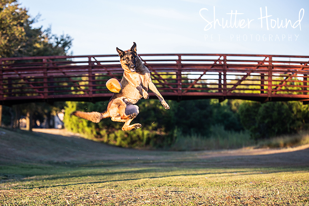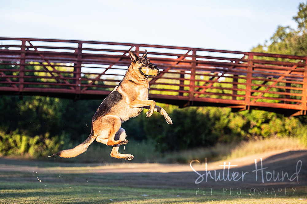 I recently had the pleasure of photographing Duke the German Shepherd in an early morning mini session. He is a very handsome and well-trained guy. We headed over to a nearby park shortly after sunrise to take advantage of the gorgeous light and cooler weather. Duke was a natural and after the standard portraits were captured, we focused on getting some action shots of him catching his ball. Duke has some hops!