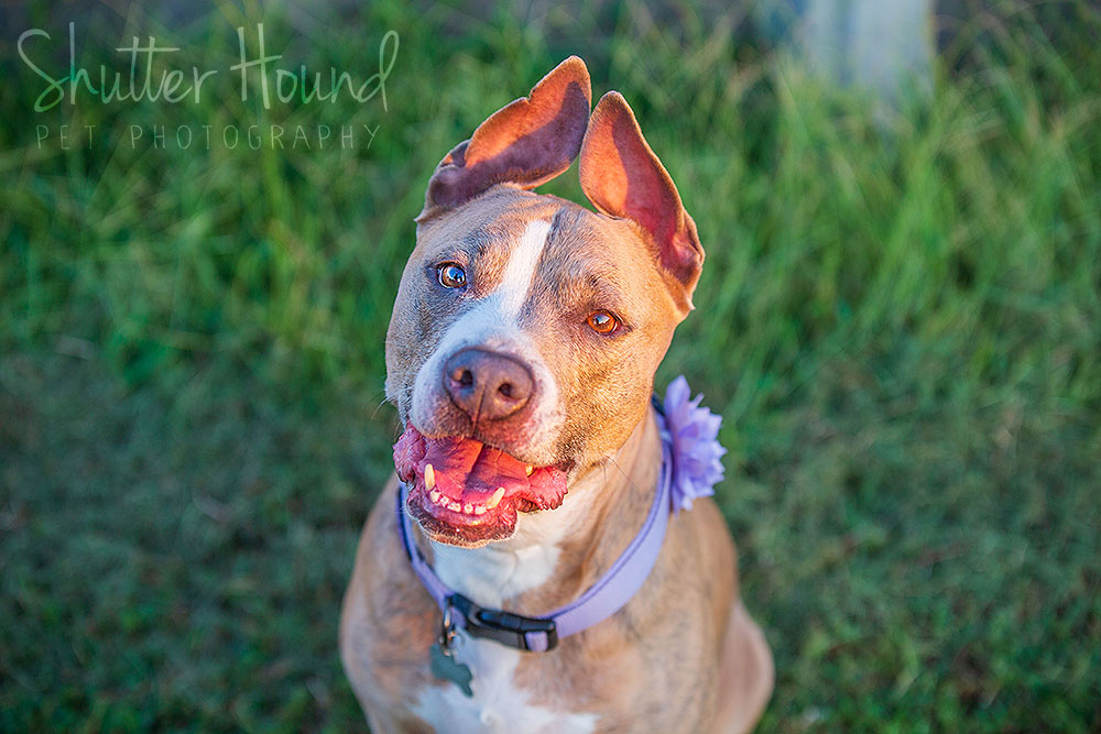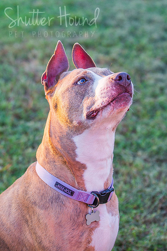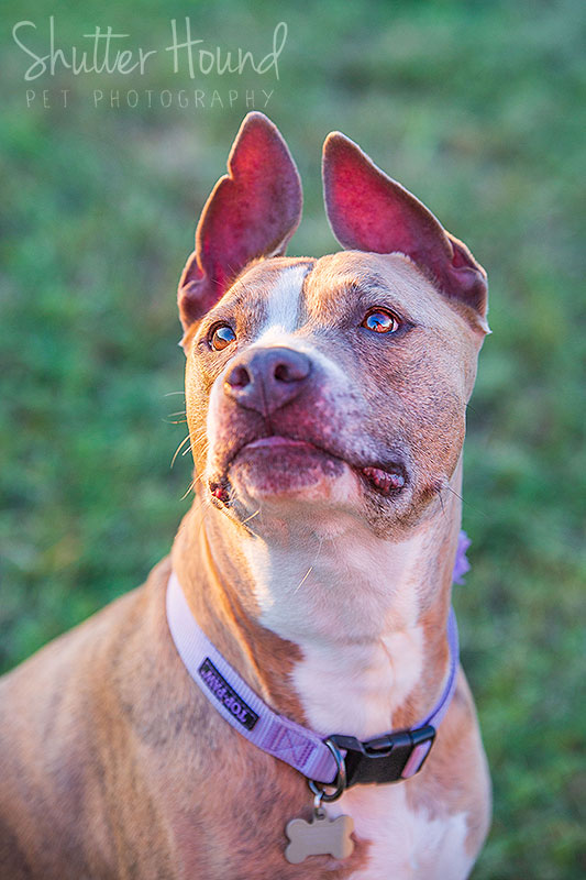 This is Miss Evie, an American Staffordshire Terrier, also known as a pitbull. Her dad has had her since a pup and she’s usually just a big ol’ lazy baby! She is staying with Luna and her family right now while her dad is deployed overseas. Don’t worry, she’s getting spoiled rotten while he’s gone! It was a little tricky doing both Evie and Luna’s photos at the same time, but we managed to get some great shots of both of them!