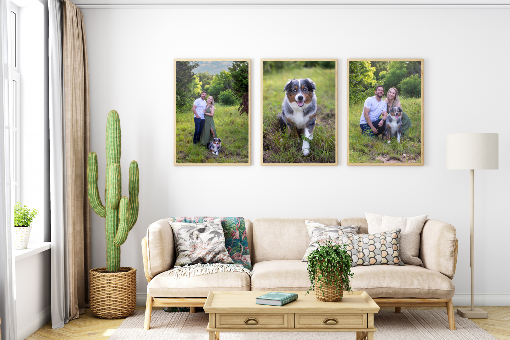 Canvas gallery wraps are a popular choice for displaying pet photography due to their durability and artistic appeal. Select your favorite images and I can have them printed on high-quality canvas. The texture and depth of canvas prints add a unique dimension to your pet’s portraits, making them feel more like works of art. Hang them in your living room, bedroom, or any area where they can become a focal point and start conversations with guests.