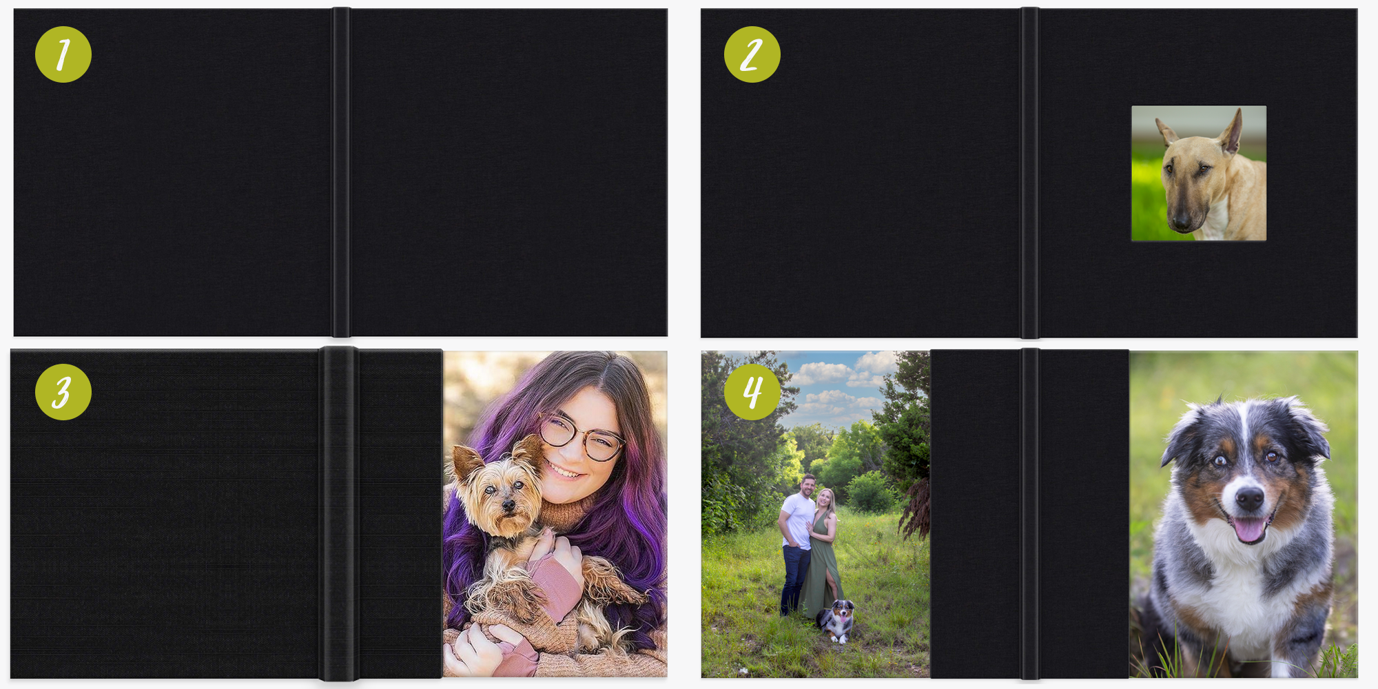 Layflat Photo Books start at $155. Available in square (6×6, 8×8, 10×10, or 12×12), portrait (8×6, 11×8, or 11×14), and landscape (6×8, 8×11, or 14×11). The pages are layflat style, which means when open, the book lays perfectly flat and no visual information is lost in the gutter. This style is ideal for displaying images that run across a full spread. The paper is thick, matte paper, which provides bright colors and sharp contrast. Each book comes with 20 pages (or 10 spreads), with additional pages available at an extra cost.