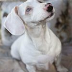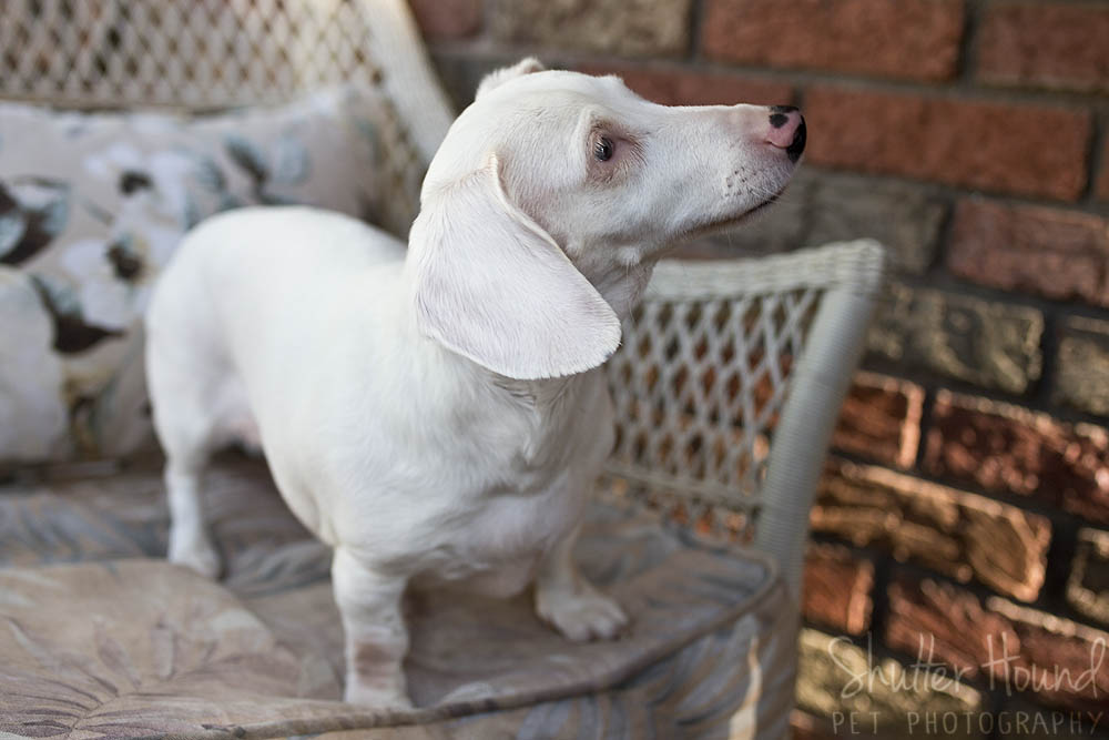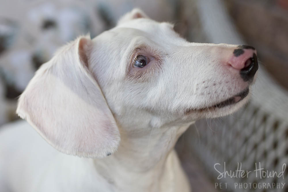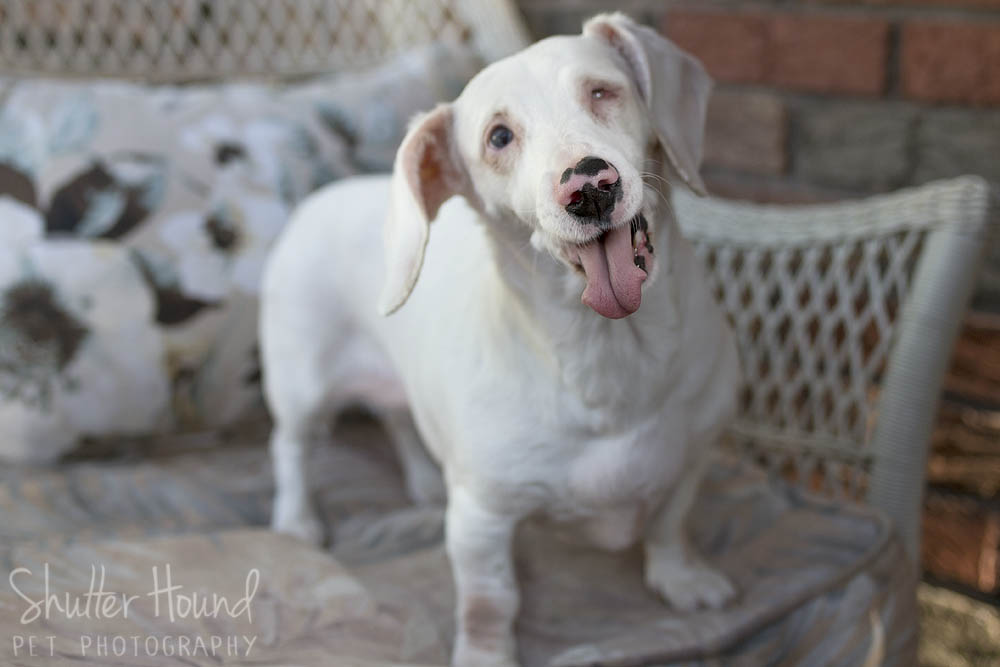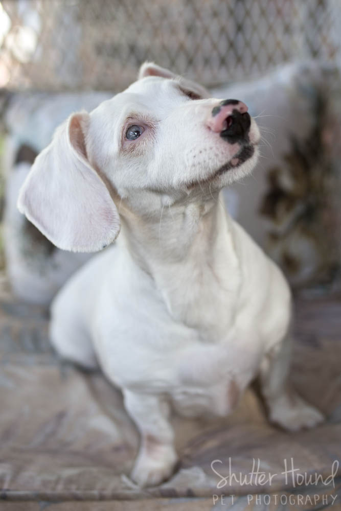 Okay, I have to admit that this next dog totally pulled on my heartstrings. This is Roxie, a senior dachshund who is deaf and has one eye. She’s a petite 8 lbs and still sweet as can be and alert. She loves her belly rubs and her nose is definitely in tip-top shape!