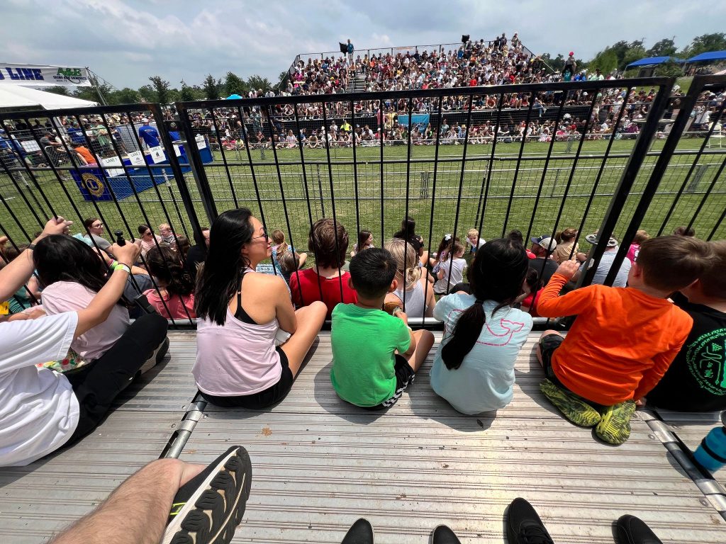 We got to watch the ‘How Fast is Your Dog’ competition, which was entertaining and featured a whole bunch of different breeds. If I remember correctly, the fastest dog ran over 30 miles per hour! We decided to stay put on the bleachers for the 30-minute break, so we had front-row seats for the 2:00 pm races.