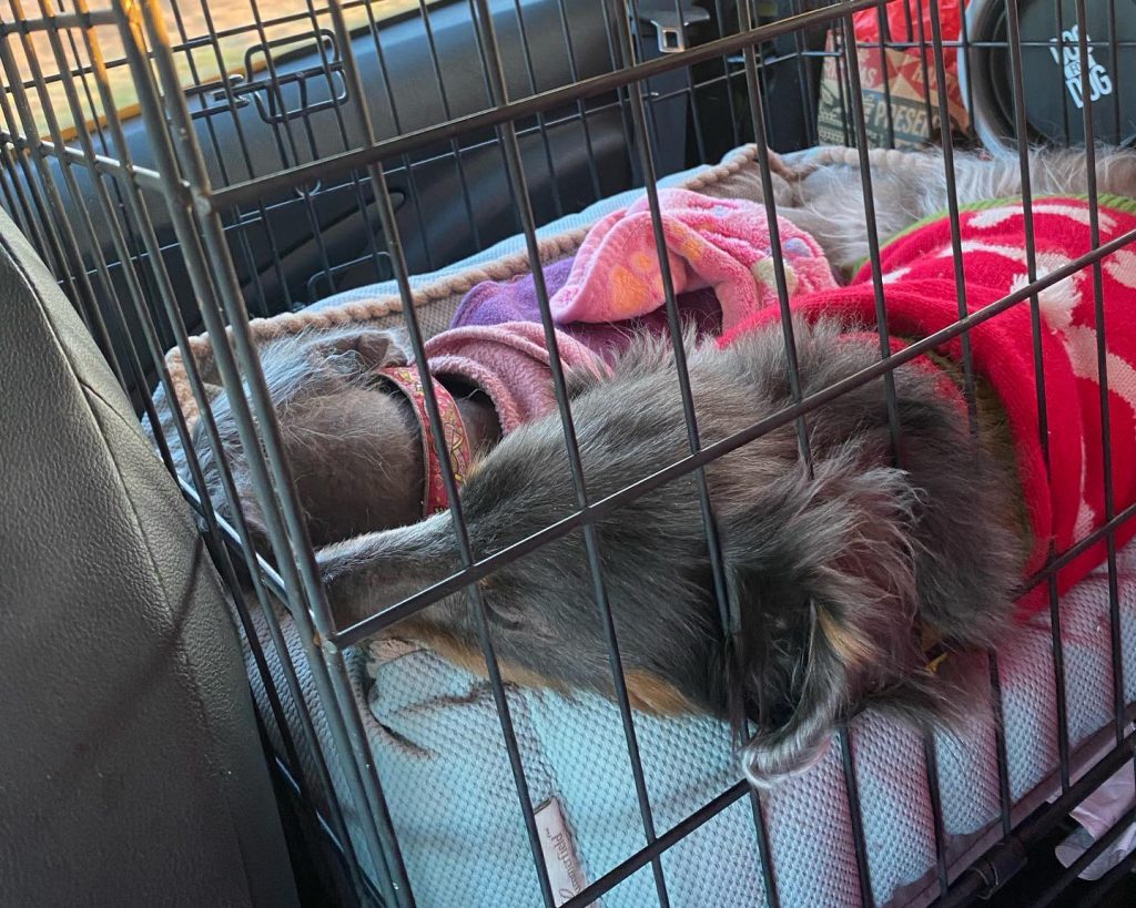 I put my dogs in a crate when traveling so they are protected in case anything happens and I don’t have to keep as much of an eye on them. It gives me way more peace of mind knowing their safe and can’t get into anything they’re not supposed to.