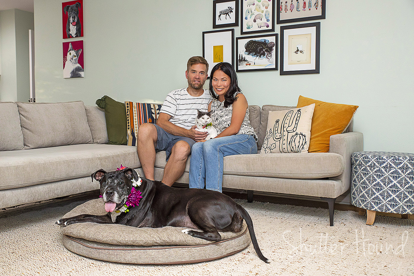 This session marked a first for me – a together session with both a dog and a cat! I was up for the challenge, and we got some really cute family shots of everybody together. Linda and Marcus created some matching collars for both Roxy and Juniper that I absolutely LOVED! Without further ado, let me introduce you to the fur babies! We have Roxy, the Pitbull-mix, who was very food-motivated and cooperated quite well with some tasty bribes. A good treat bag shake by me led to some adorable shots. Then we had Juniper, the gorgeous white and grey cat. As most cat sessions tend to go, she was a little apprehensive of a new person with a big black thing in front of their face. We still managed some cute shots by keeping my distance and letting Juniper get more comfortable in front of the camera. The focus was some group, family-style photos and we definitely achieved that!